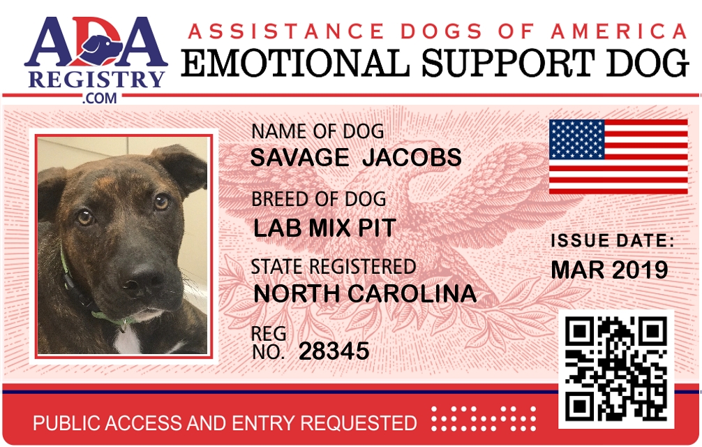 Emotional Support Dog Registration for Savage Jacobs