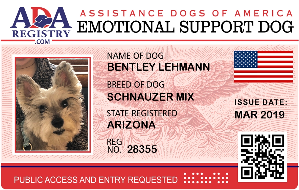 Emotional Support Dog Registration for Bentley Lehmann
