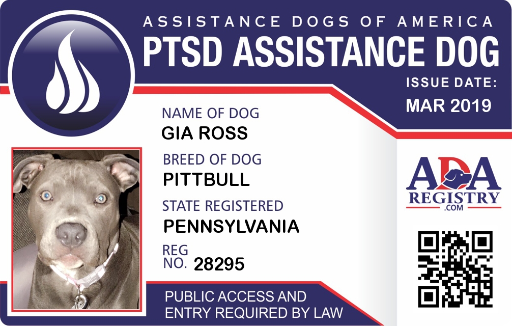 PTSD Assistance Dog Registration for GIA Ross
