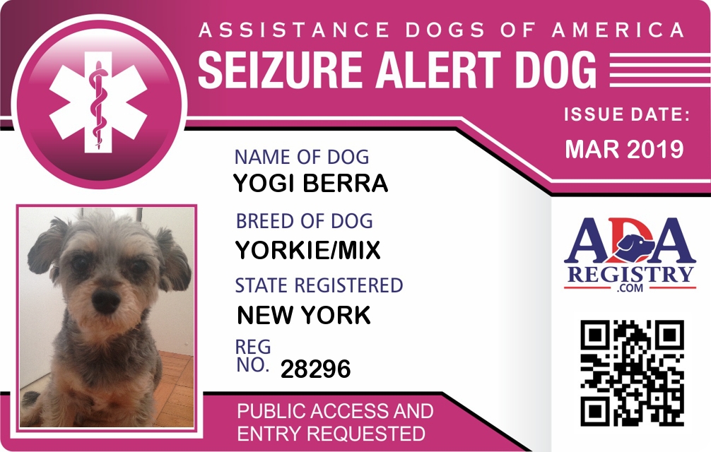 Seizure Assistance Dog Registration for Yogi Berra