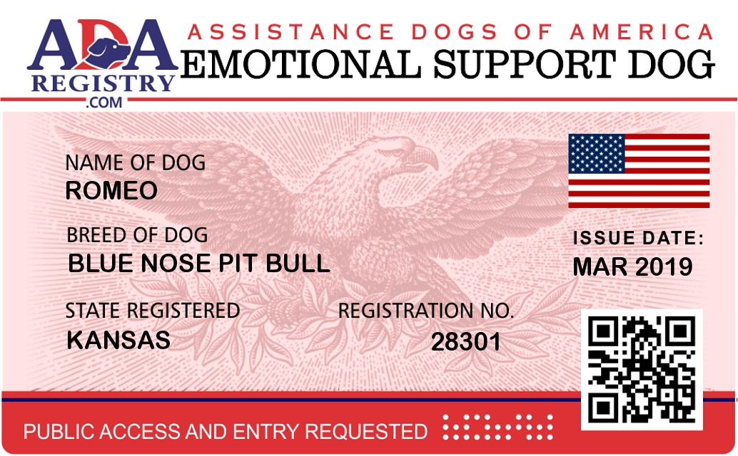 Emotional Support Dog Registration for Romeo