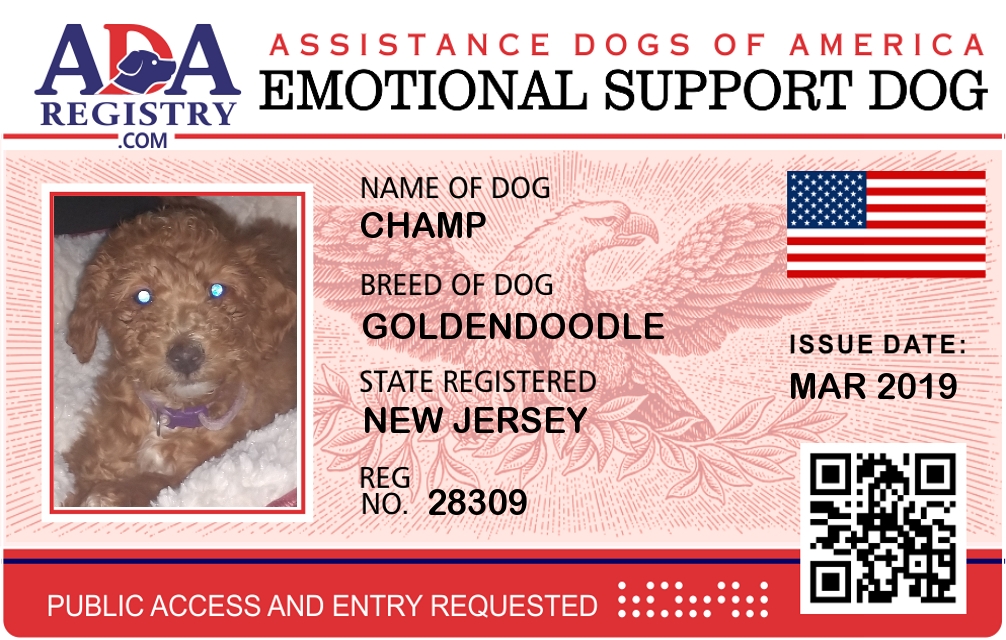 Emotional Support Dog Registration for Champ
