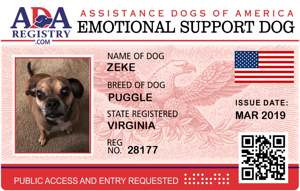 Emotional Support Dog Registration for Zeke