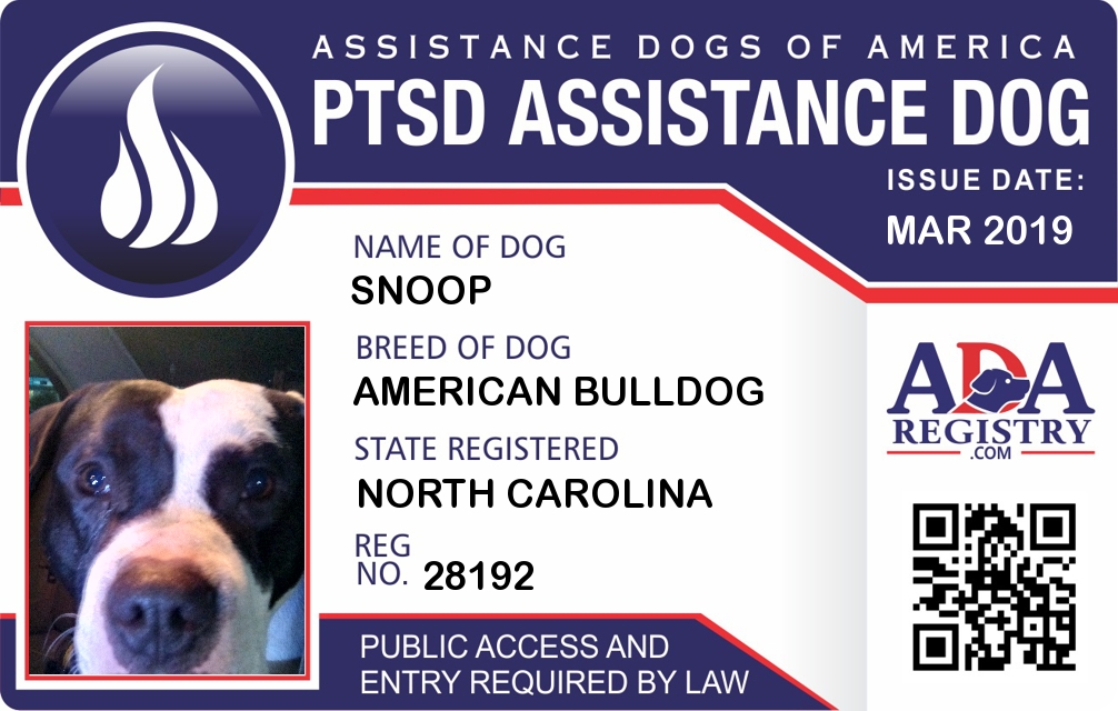 PTSD Assistance Dog Registration for Snoop