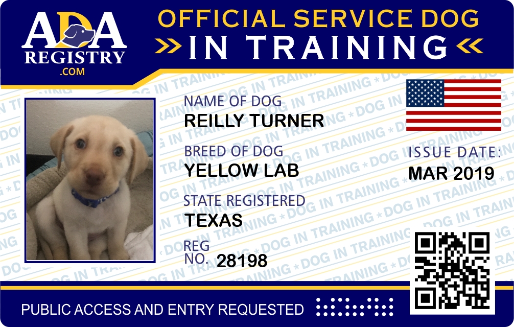 Service Dog In Training Registration for Reilly Turner