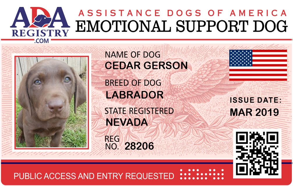 Emotional Support Dog Registration for Cedar Gerson