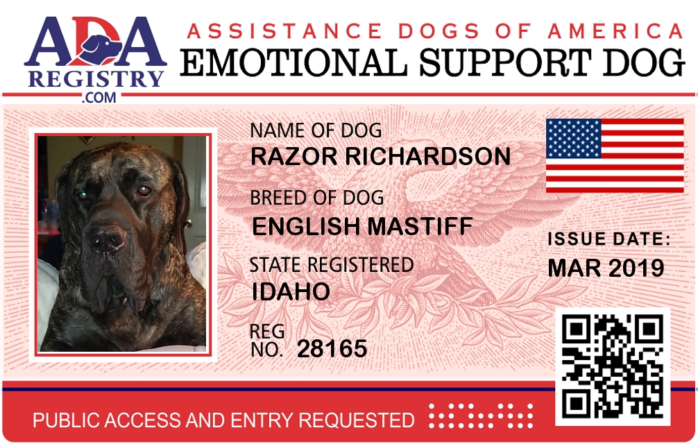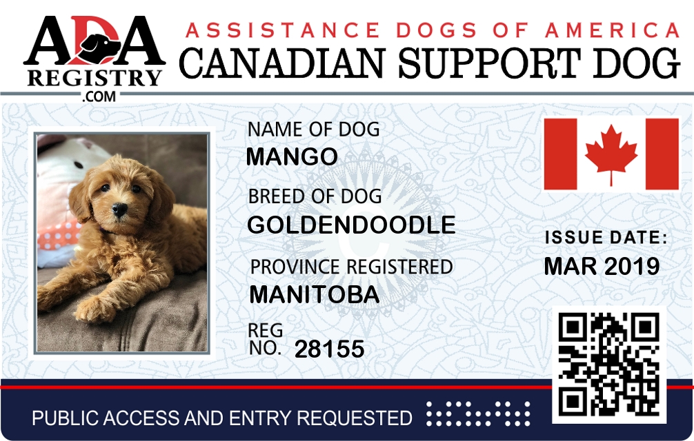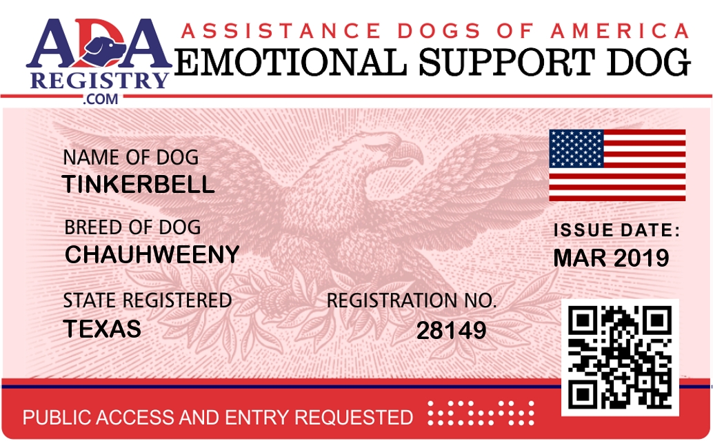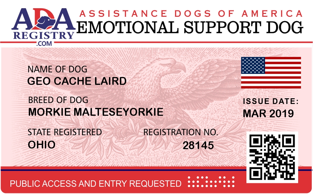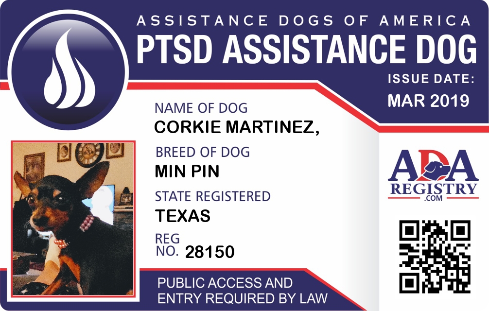 PTSD Assistance Dog Registration for Corkie Martinez,