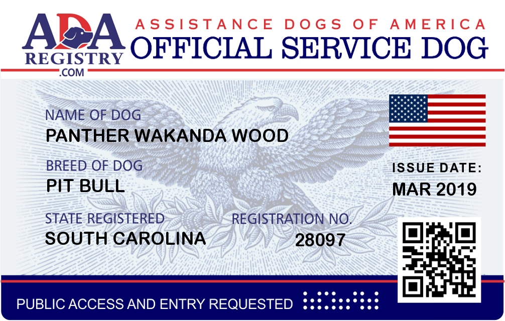 Emotional Support Dog Registration for Panther Wakanda Wood