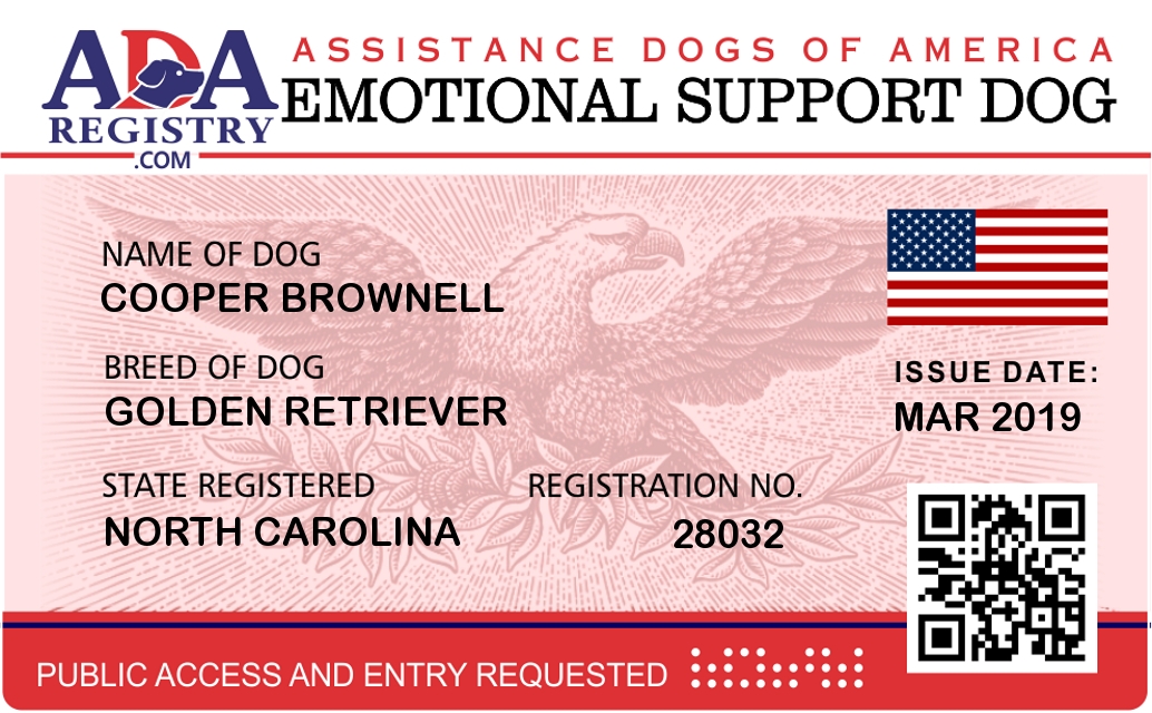 Emotional Support Dog Registration for Cooper brownell