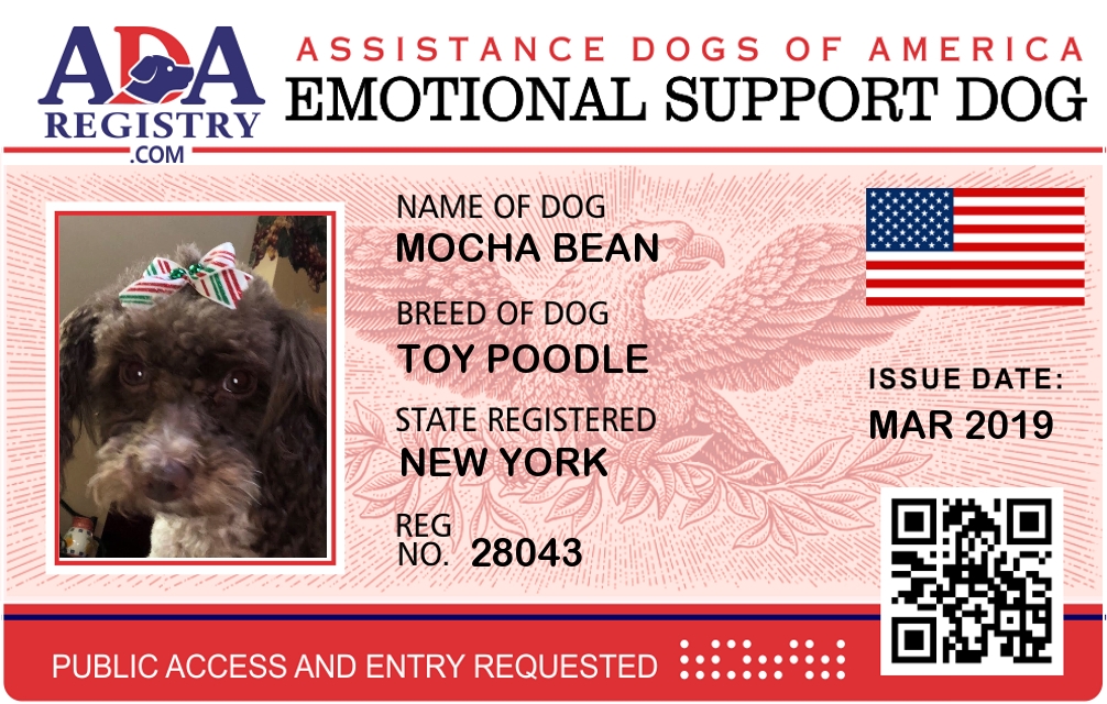 Emotional Support Dog Registration for Mocha Bean