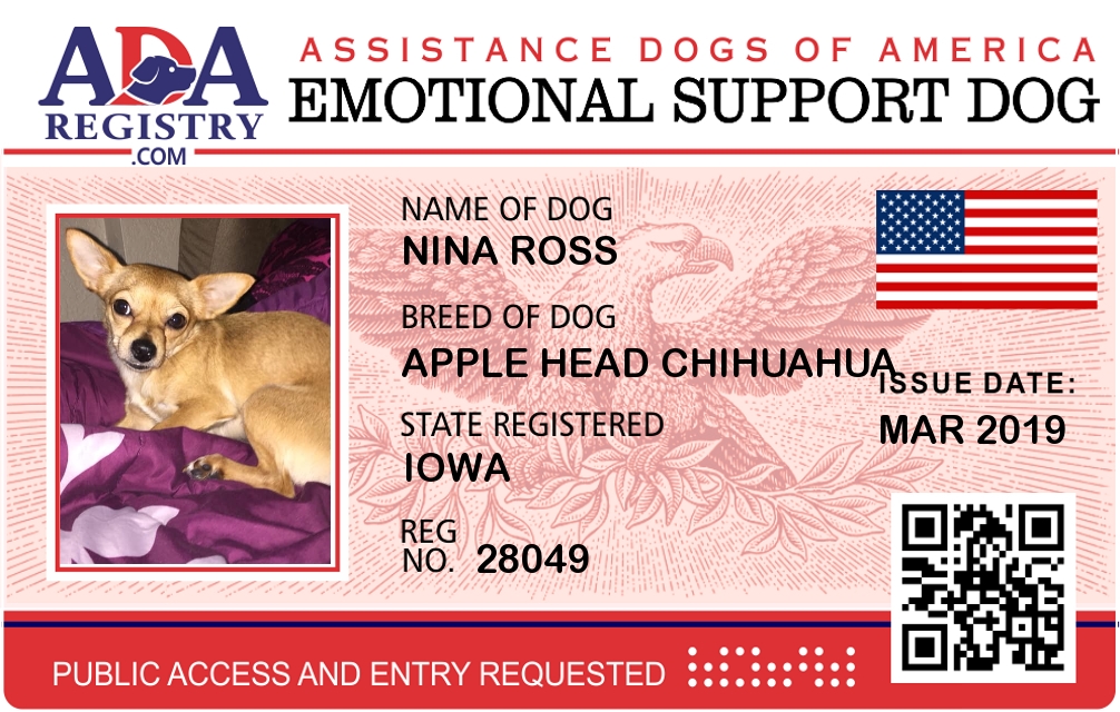 Emotional Support Dog Registration for Nina Ross