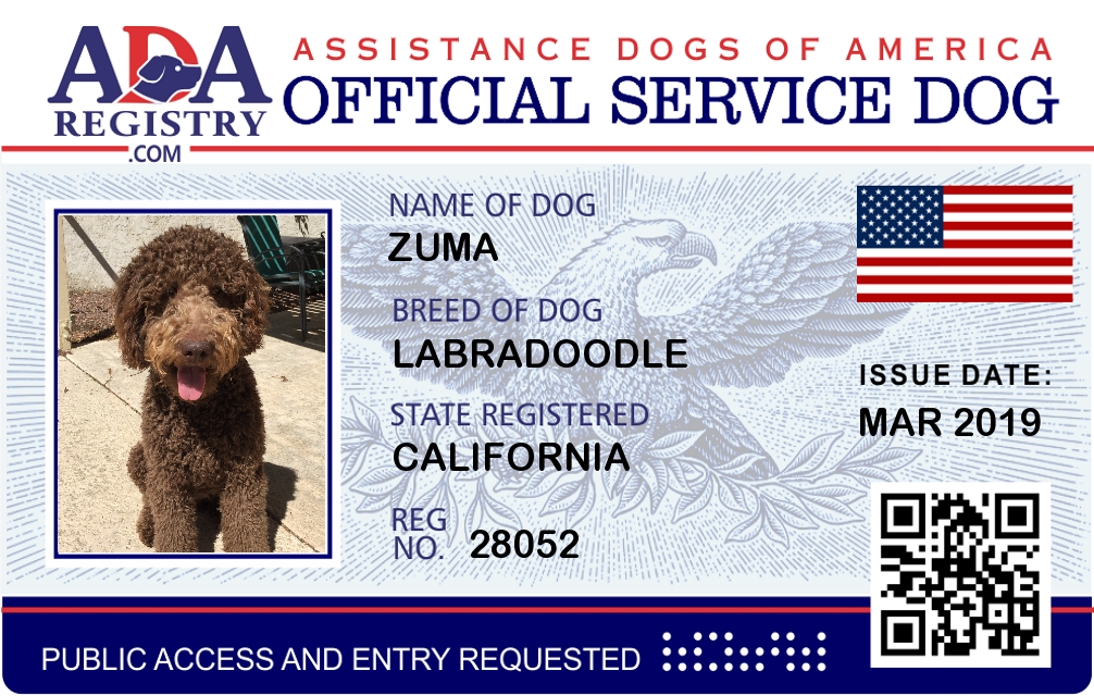 Service Dog Registration for Zuma