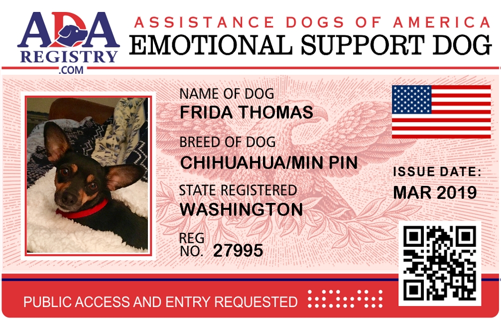 Emotional Support Dog Registration for Frida Thomas
