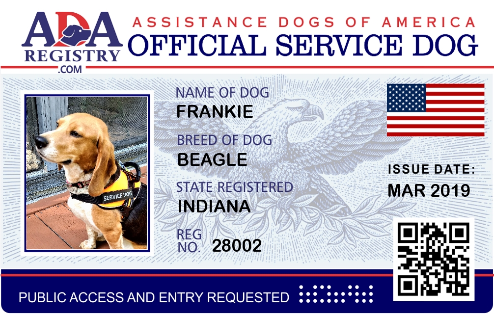 Service Dog Registration for Frankie