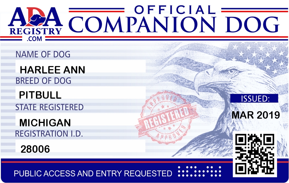 Companion Dog Registration for Harlee Ann