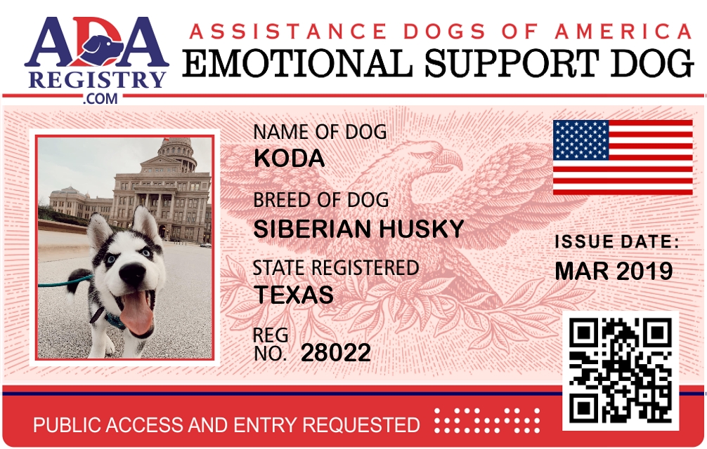 Emotional Support Dog Registration for Koda