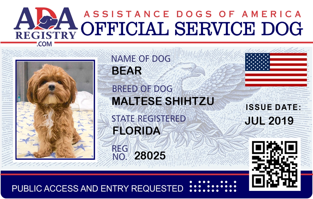 Emotional Support Dog Registration for Bear