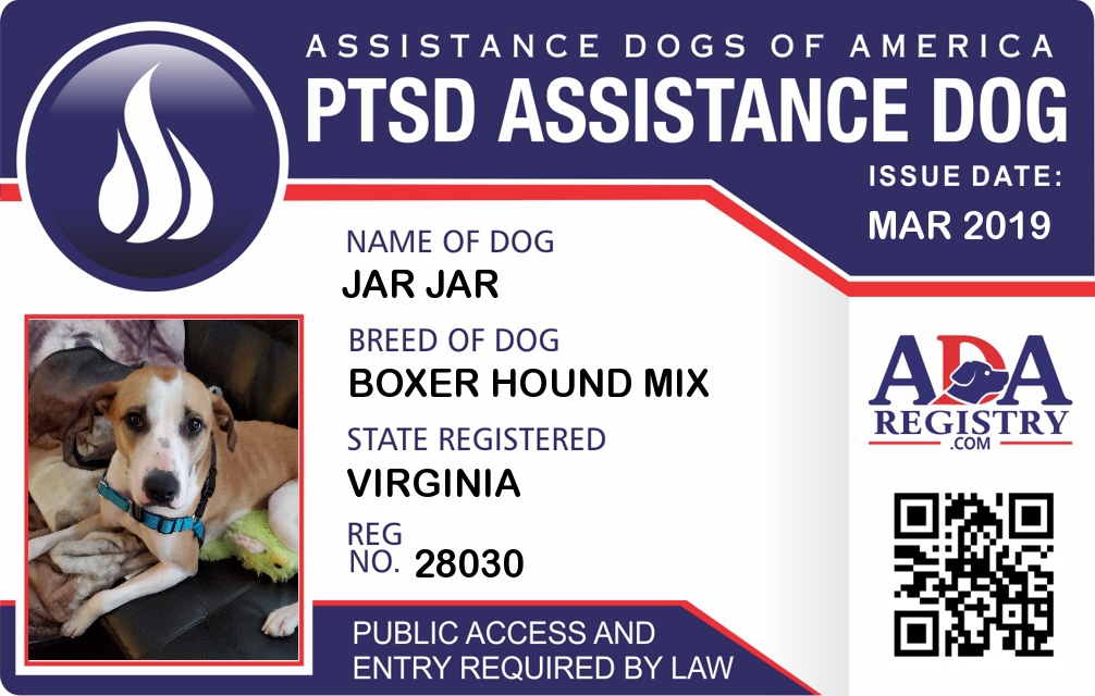 PTSD Assistance Dog Registration for Jar Jar