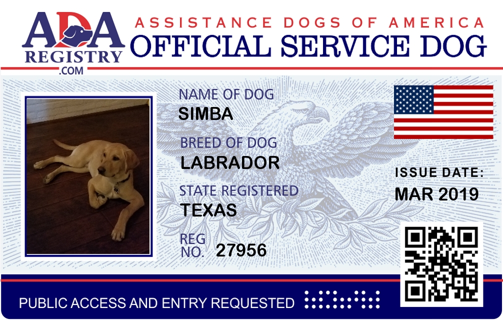 Service Dog Registration for Simba
