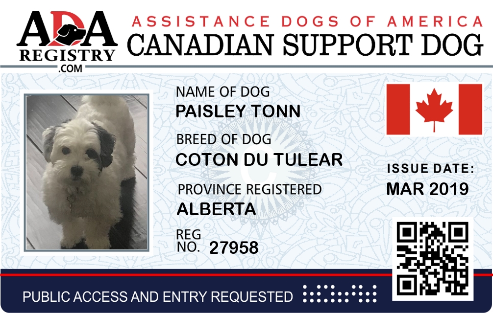 Emotional Support Dog Registration for Paisley Tonn