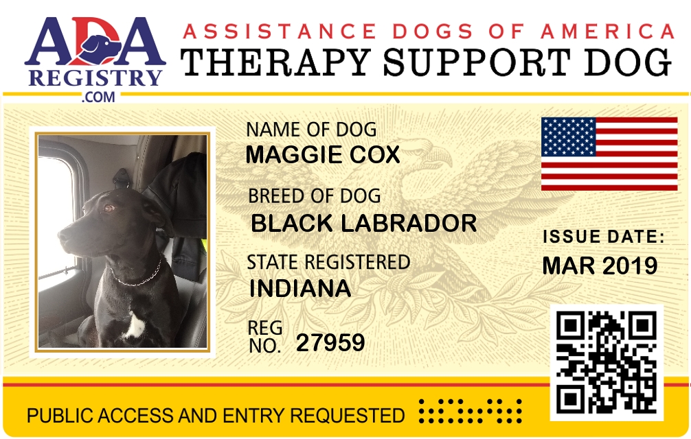 Emotional Support Dog Registration for Maggie Barclay