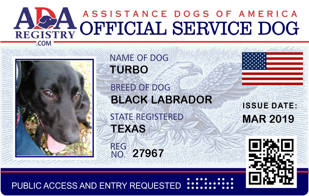 Service Dog Registration for Turbo