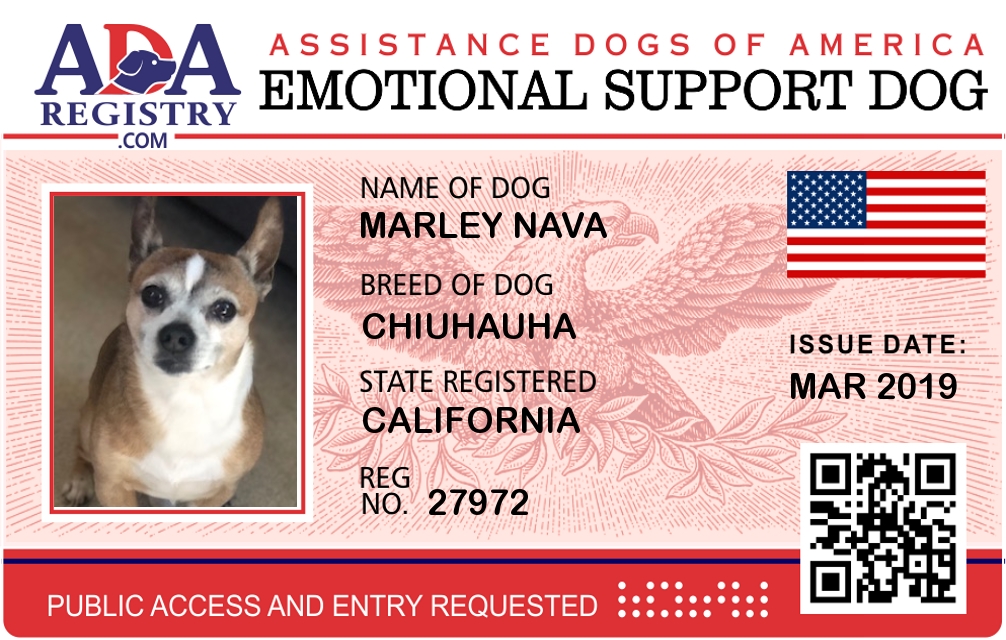Emotional Support Dog Registration for Marley Nava