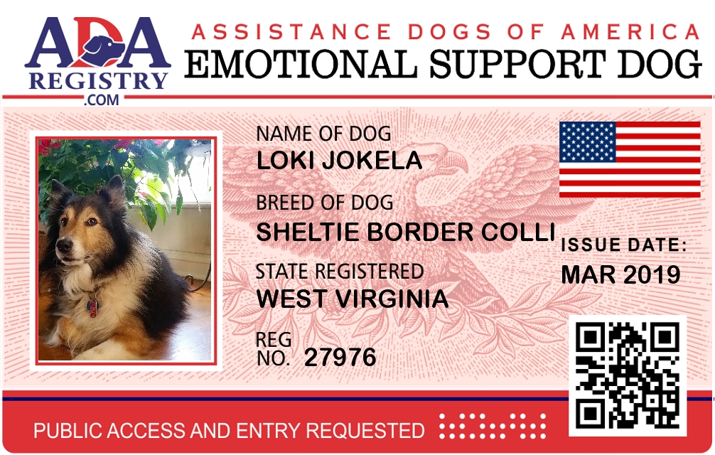 Emotional Support Dog Registration for Loki Jokela