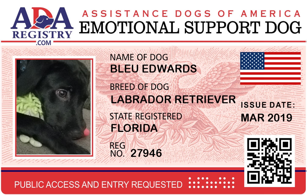 Emotional Support Dog Registration for Bleu Edwards