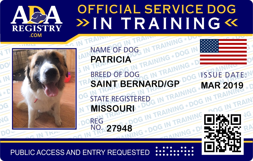Service Dog In Training Registration for Patricia