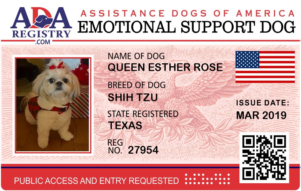 Emotional Support Dog Registration for Queen Esther Rose