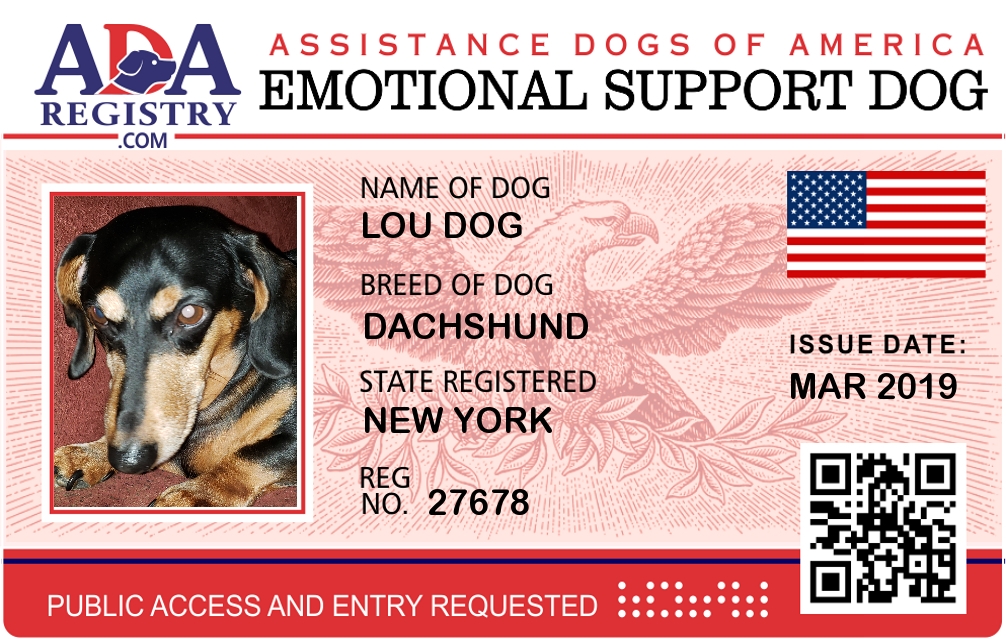 Emotional Support Dog Registration for Lou Dog