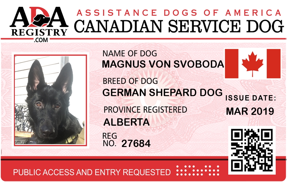 Service Dog Registration for Magnus Von Svoboda