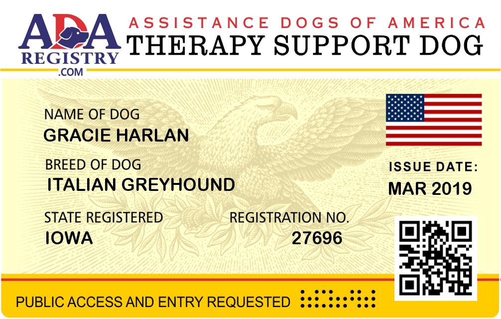 Therapy Dog Registration for Gracie Harlan