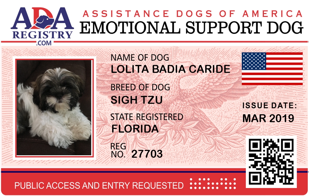 Emotional Support Dog Registration for Lolita Badia Caride