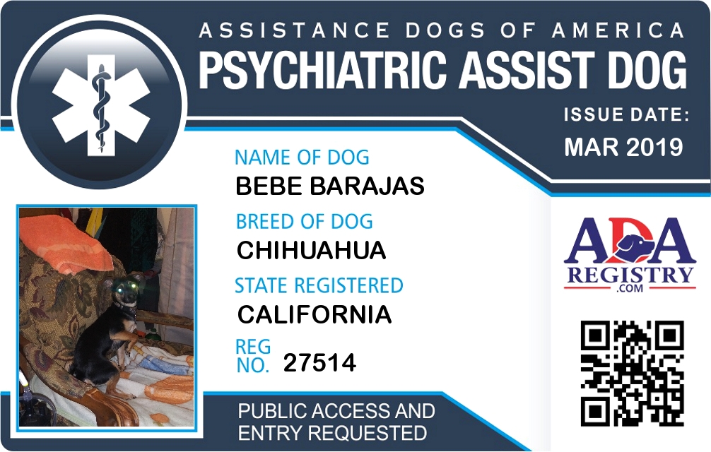 Medical Assistance Dog Registration for Bebe Barajas
