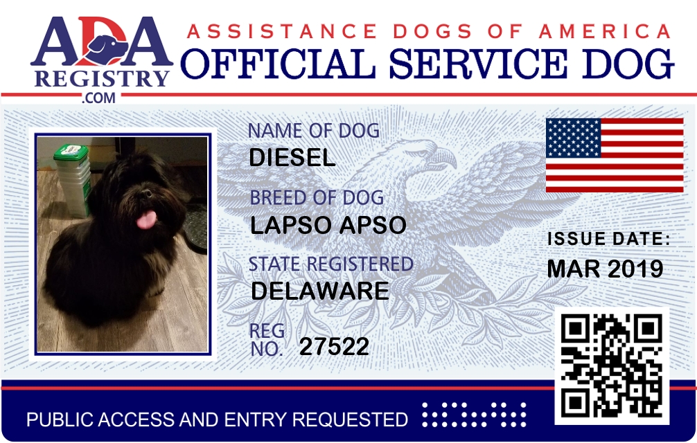 Service Dog Registration for DIESEL