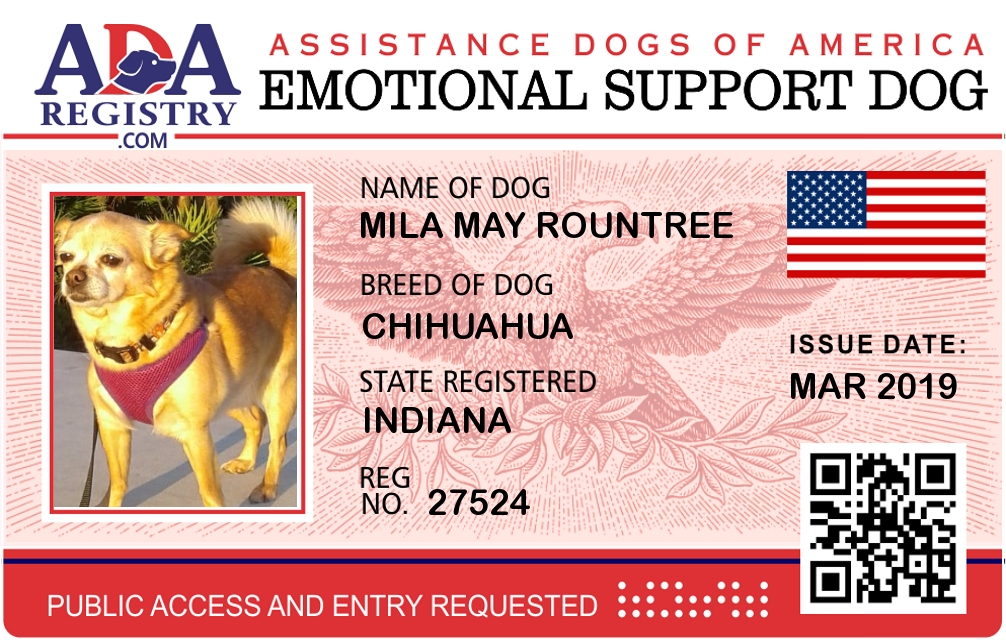 Emotional Support Dog Registration for Mila May Rountree