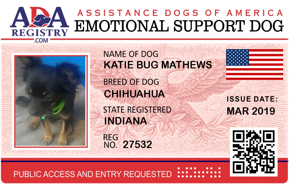 Emotional Support Dog Registration for Katie Bug Mathews