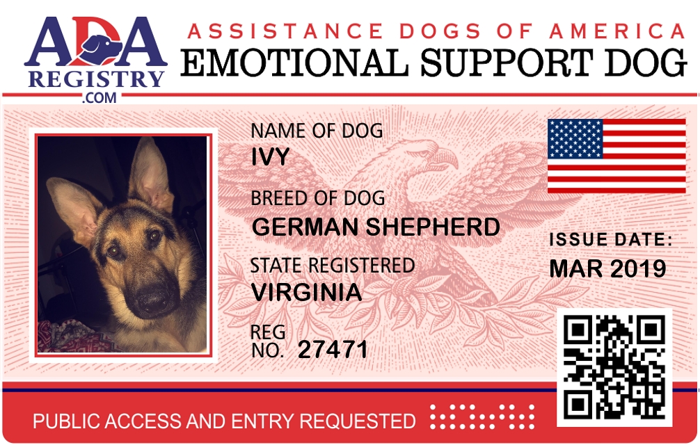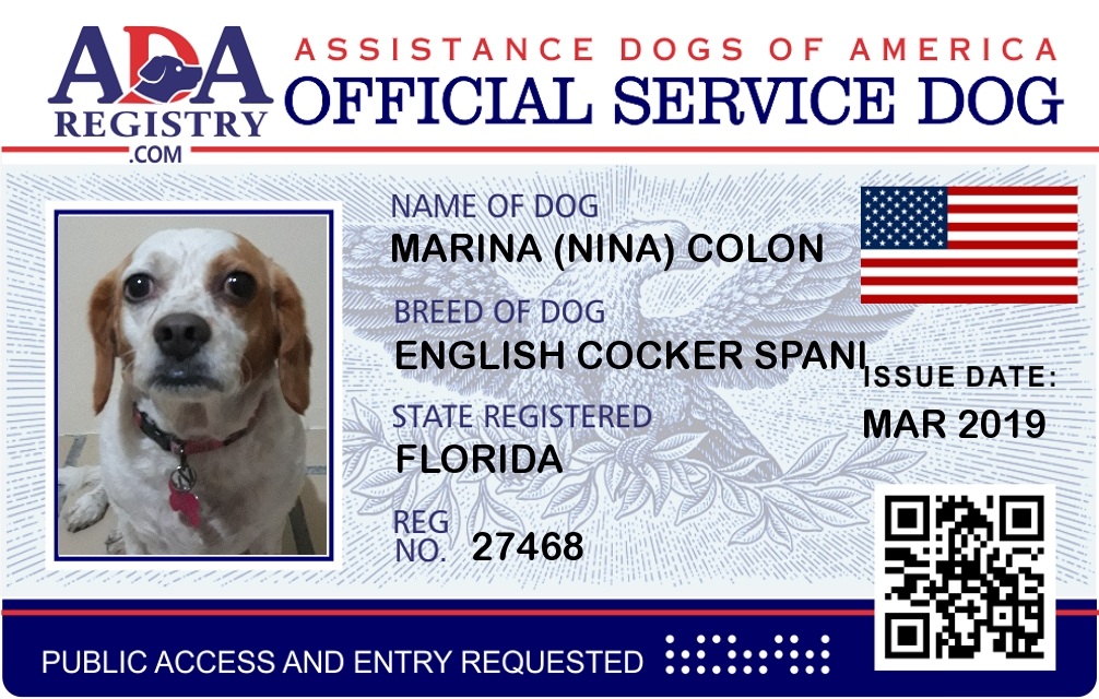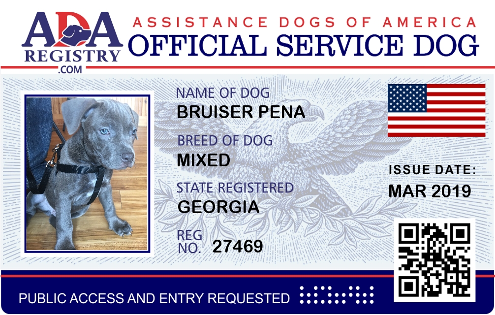 Service Dog Registration for Bruiser Pena FRAUD DO NOT HONOR