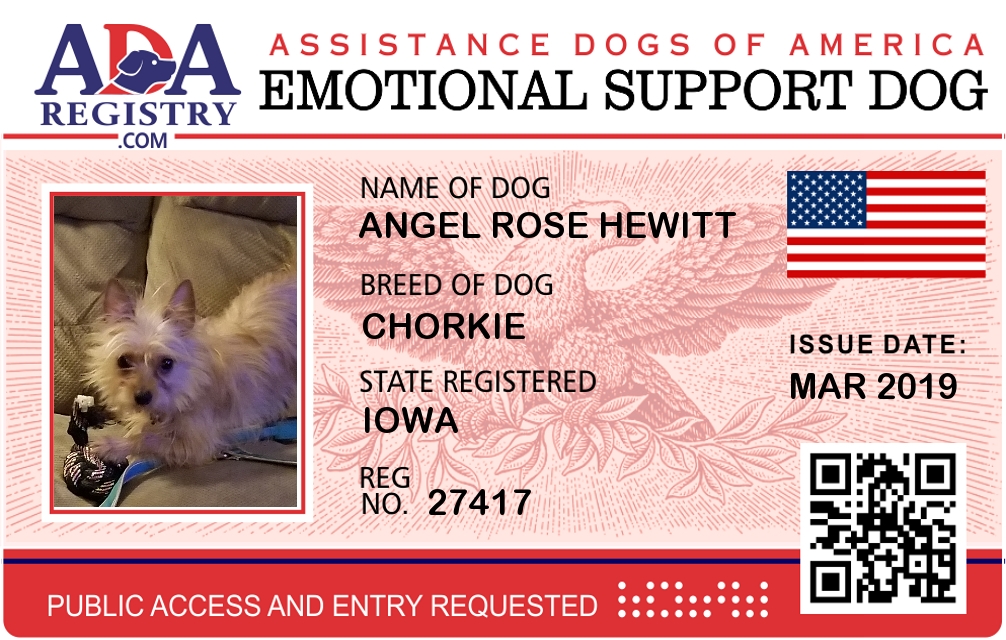 Emotional Support Dog Registration for Angel Rose Hewitt