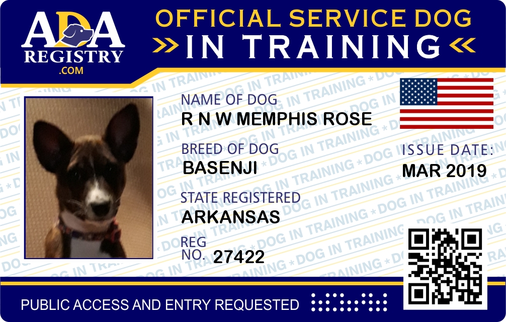 Service Dog In Training Registration for R n W Memphis Rose