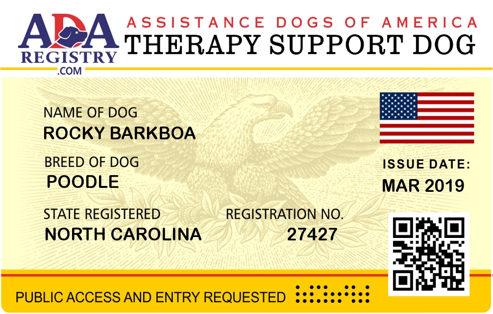 Emotional Support Dog Registration for Rocky Barkboa