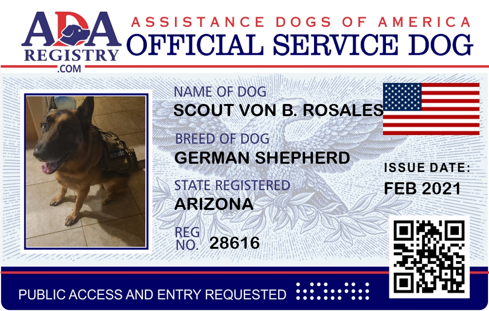 Service Dog Registration for Scout Von B. Rosales