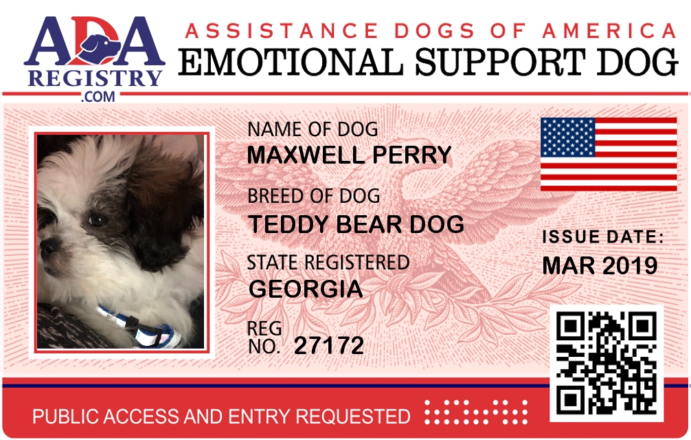 Emotional Support Dog Registration for Maxwell Perry