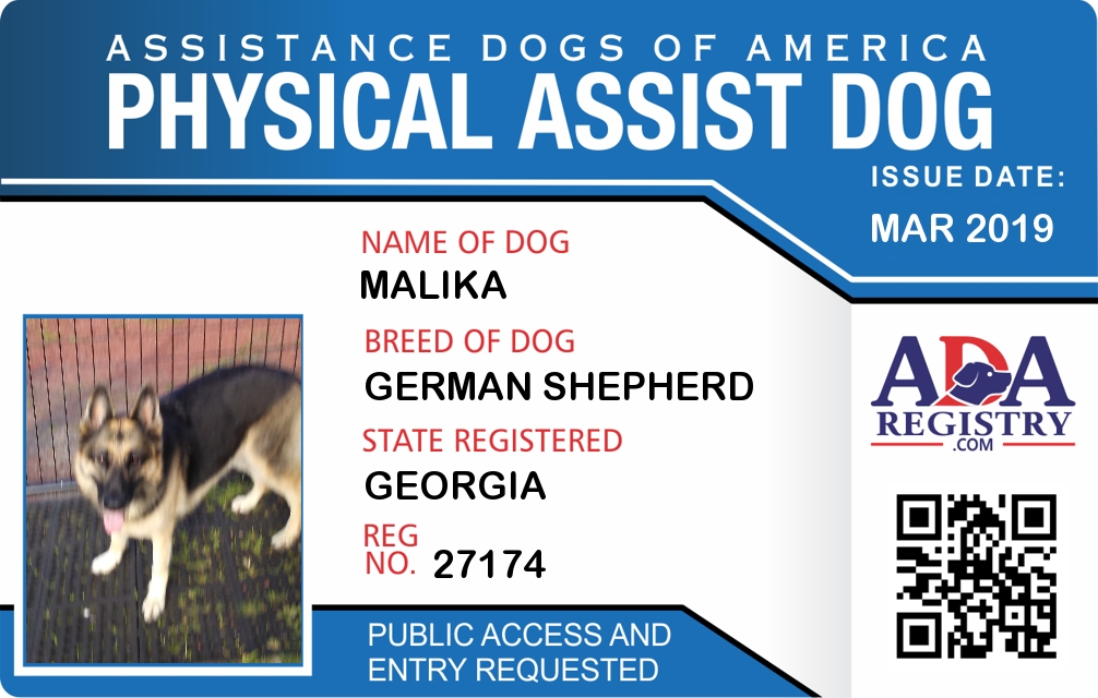 Physical Assistance Dog Registration for Malika`