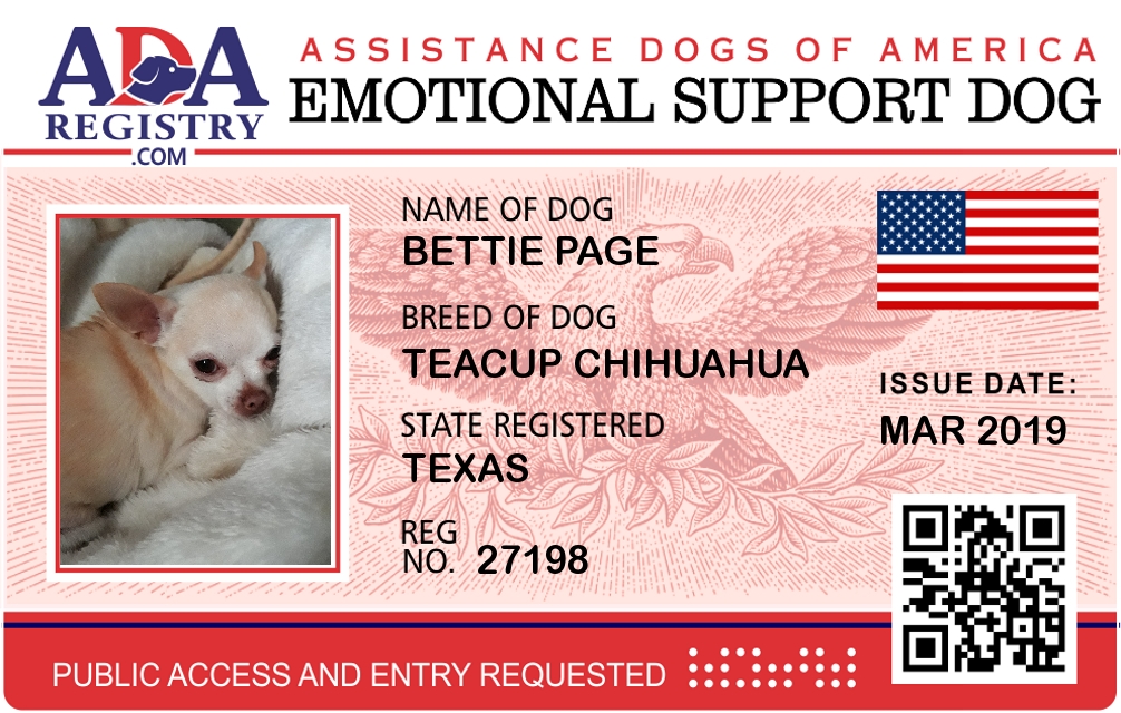 Emotional Support Dog Registration for Bettie Page