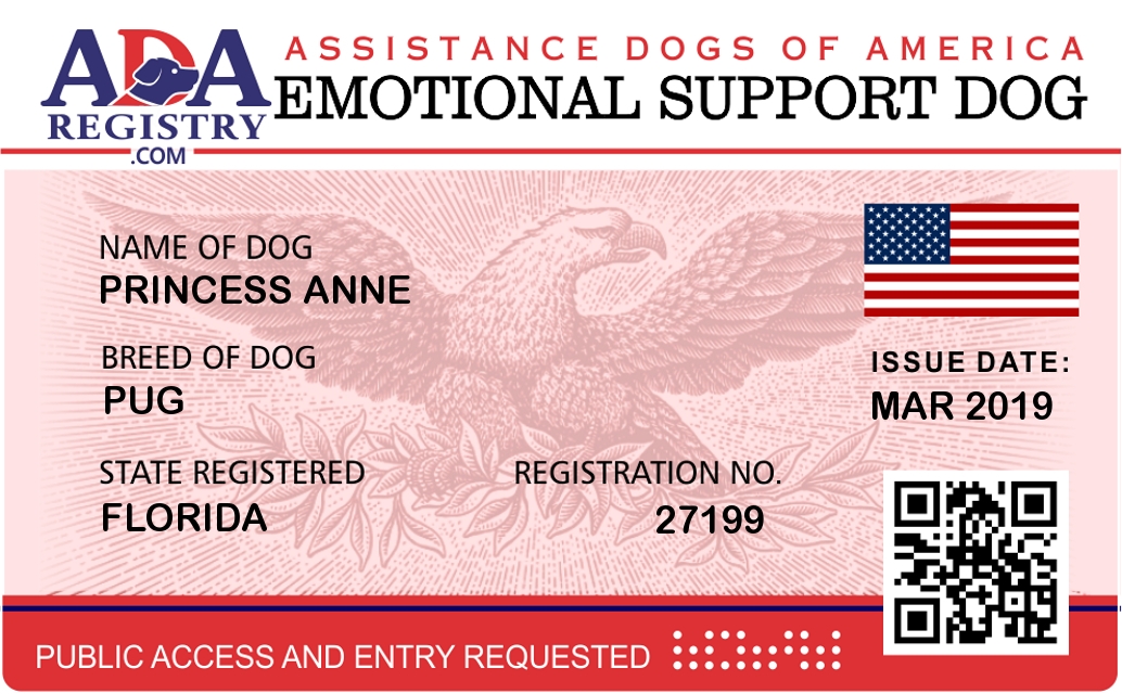 Emotional Support Dog Registration for Princess Anne