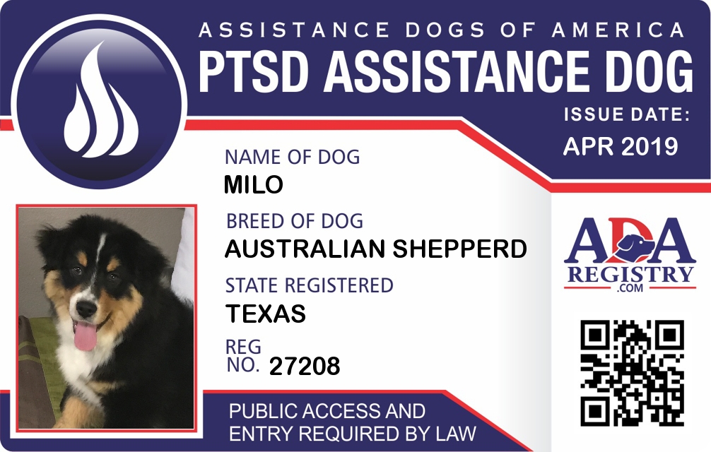 PTSD Assistance Dog Registration for Milo