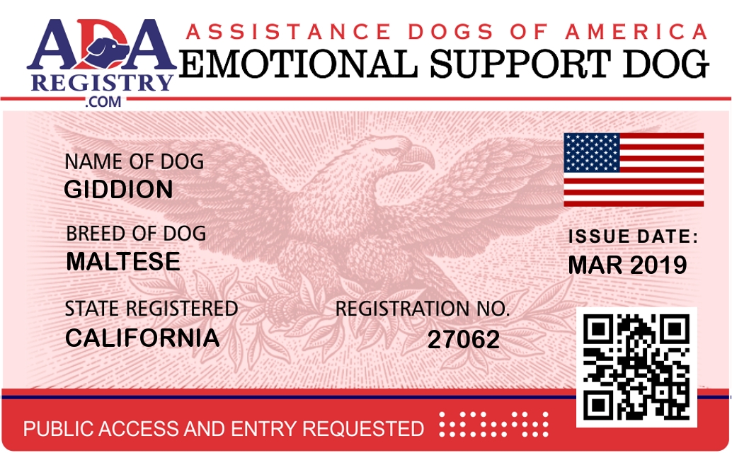 Emotional Support Dog Registration for Giddion